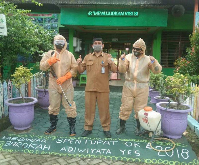 Aksi dua orang "Astronout" Spentupat menjelang persiapan rencana Pembelajaran Tatap Muka di Sekolah