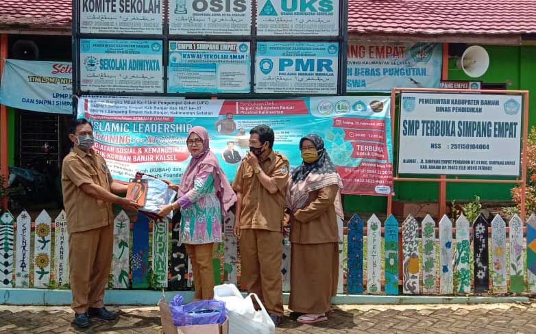 HUT ke-37 SMPN 1 Simpang Empat, mengadakan Seminar Online sekaligus Pemberian Bantuan kepada Siswa & Orang Tua terdampak Banjir (Berita)